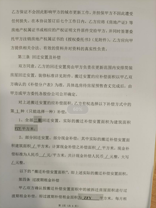 過渡費35/平,搬遷費40塊一個平,預計4年可交樓;
