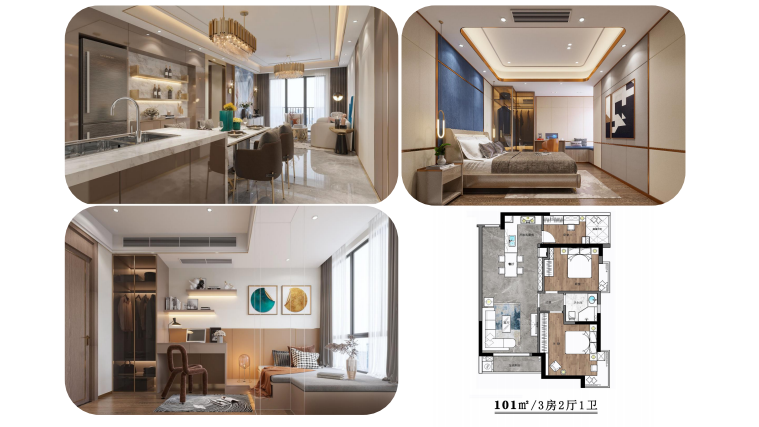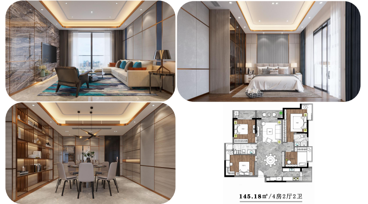 戶型豐富多選,43.48-64.79平米1-2房,92.31-127.2平米3房,145.18平米4