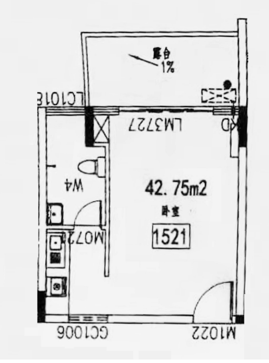 一房一廳一衛(wèi)一陽臺(tái):44㎡